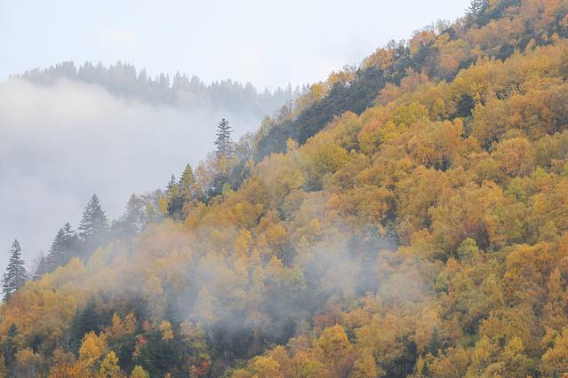 喜欢这一条盘绕在山间的盘山公路,两边是五颜六色的彩林,行车于这条长长的画廊之中,打开车窗,任由微风拂过,这样的画面让人美得心醉。