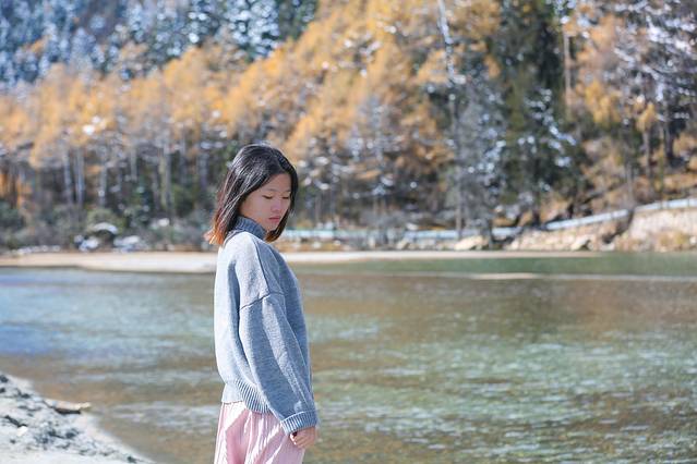 想要避开人群拍一张人物照,那么湖边也是不错的选择,脱掉外套,偶尔吹来的凉风让人忍不住将手缩进衣袖里。