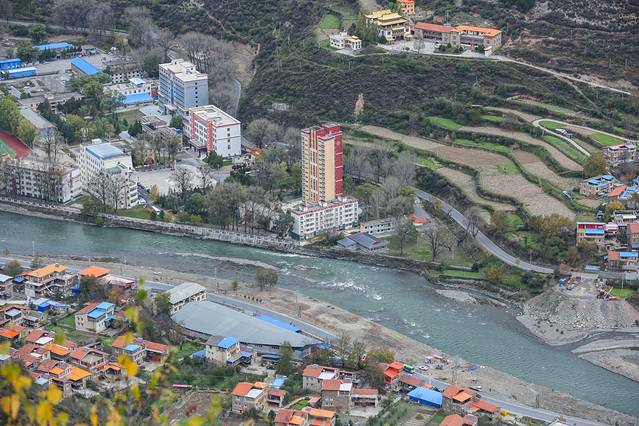 作为阿坝州州府的马尔康,这座城市并不是很大。从山上俯瞰,红色蓝色屋顶特别可爱。