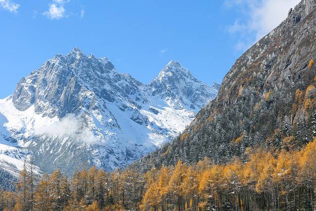 来过三次毕棚沟,每次都是秋季,然而即使来过这么多次,我依然看不够这里美景。毕棚沟位于四川省阿坝藏族羌族自治州理县朴头乡梭罗沟境内,是国内非常知名的红叶观赏圣地。秋景与雪景的结合,仿佛置身于童话世界般,美轮美奂。