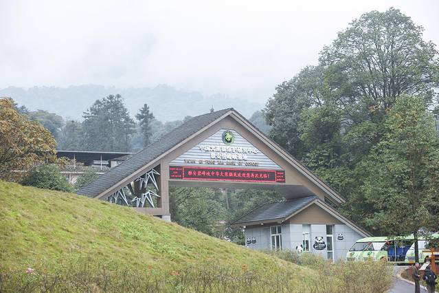 随后我们来到了都江堰的大熊猫繁育研究基地,这里的大门和成都的熊猫基地一模一样。