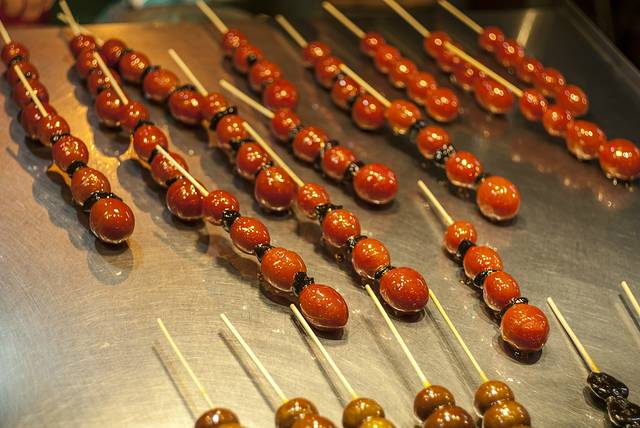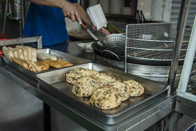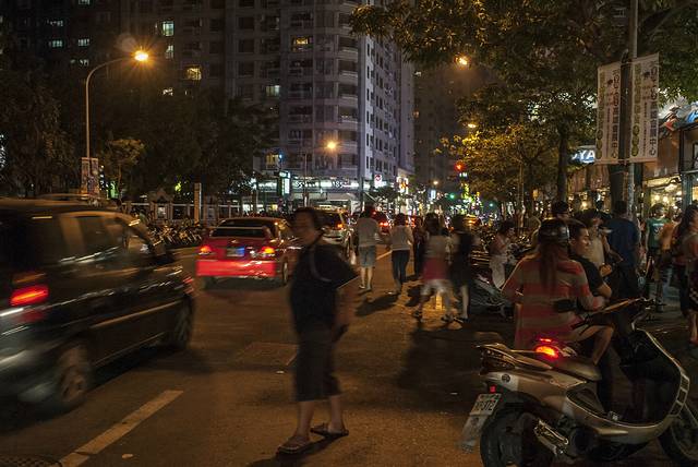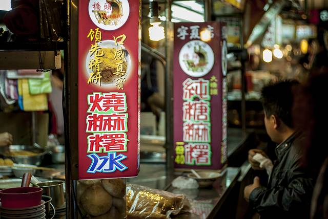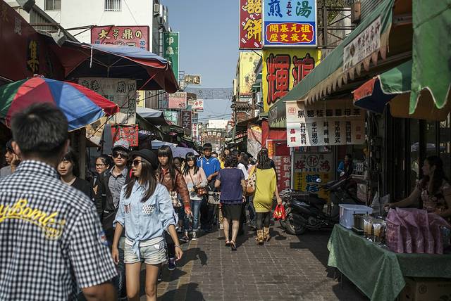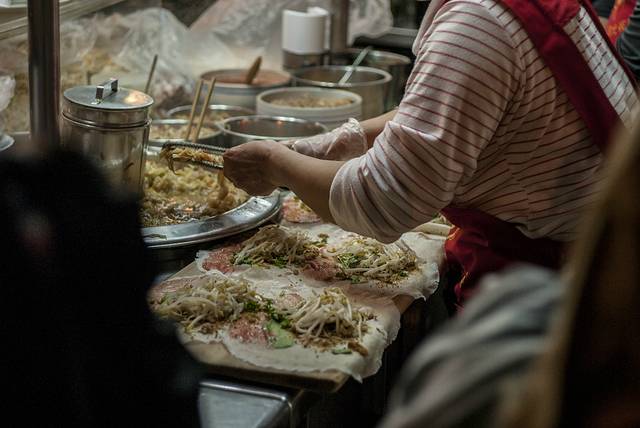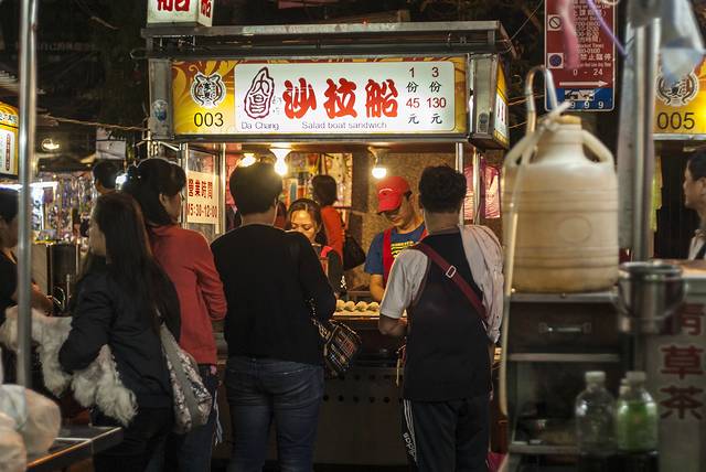 到 台北 的第一天,导游就介绍去了位于 台北 南京 西路附近的 宁夏夜市 ,规模虽然不大,但基本可以“窥一斑而知全豹”了。据说像这样的夜市在 台北 还有华西街、师大、 临江 街、绕河街、 辽宁 街、士林等多处观光夜市。刚刚转过街口,大老远就闻到“炸臭豆腐”的味道,不过,我还是对一种叫做“蚵仔煎”的小吃比较感兴趣,滑爽脆嫩,鲜香可口,据传蚵仔煎起源于 台湾 南部的 安平 、 嘉义 地区。蚵仔煎最早的做法是用当地鲜采的蚵仔(牡蛎)里调入用水和开的番薯粉,再加入鸡蛋、韭菜等食材煎成的饼状小吃。如今在传统的基础上,大多采用了特制的糊粉,使得口感和色泽更为爽滑和鲜亮。