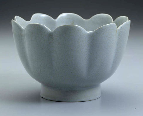 北宋 汝窑 蓮花式温碗 高10.4公分,口径16.2公分,足径8.1公分,深7.6公分,重465公克。
