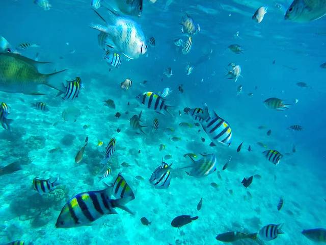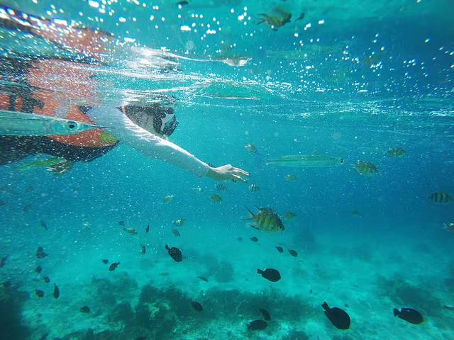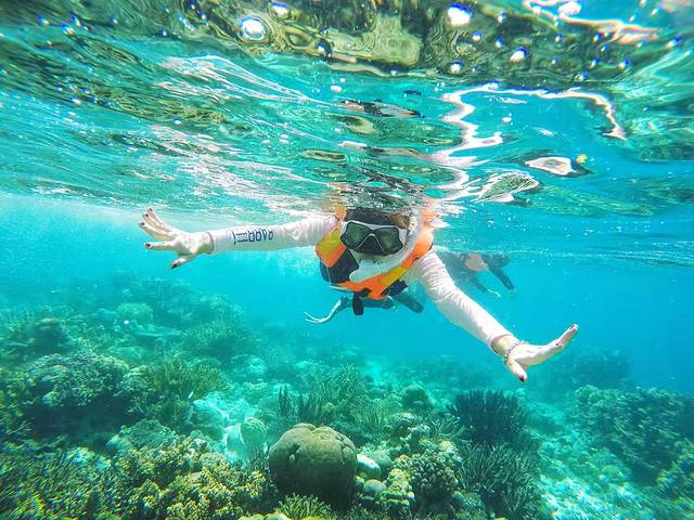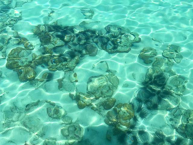 在这里虽然烈日朝天,但在这片玻璃海中,你一定会愿意脱下防晒衣,自由浮潜一番。