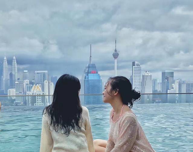 顶楼的无边际泳池,恍如三年前,新加坡的金沙酒店,一幕幕如此相似。在这里能待上一个下午啥事儿也不想,还能看到标志性建筑双子塔和吉隆坡塔。