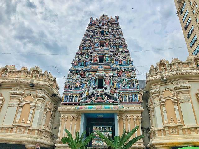 马里安曼印度庙建于1872年,是马来西亚境内最大也是最华丽的印度神庙,说实话到了吉隆坡你会发现,到处是印度人。庙里充满了繁丽的雕刻,塑金和手绘图案,再加上一些意大利和西班牙的瓷砖,使得寺庙显得更加富丽堂皇。