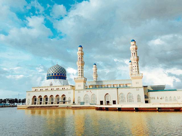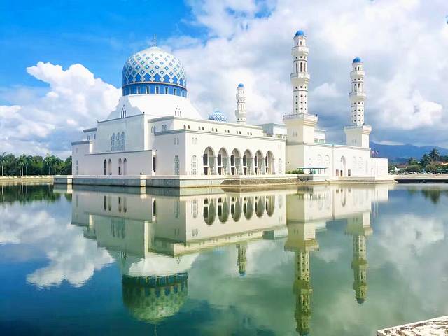 马来西亚是一个穆斯林国家,国教是伊斯兰教,因此全国各地都有着许多清真寺。而位于沙巴州卡士湾畔的水上清真寺则是马来西亚目前最大的清真寺之一,原名叫做哥打京那巴鲁市立清真寺。在岸边眺望,可见清真寺的白色外观与蓝天完美地连成一体,加上建造在人造湖上,感觉有如浮在水面上,因而得到了“水上清真寺”的美誉。