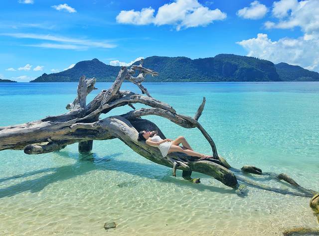 军舰岛有一个长长的拖尾沙滩,也是”世界十大拖尾沙滩“之一,属于敦沙卡兰海燕公园诸岛之一。岛上种满了椰子树,有军队驻守。当船往军舰岛驶进时,你会看到海水从湖水绿-天空蓝-玻璃色不同层次的变换。