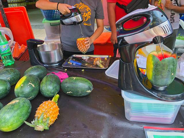 除了之前所说的橘子冰,还有不得不尝试的沙梨冰和雪泡,一杯清爽的饮品+一份味道浓郁的叻沙,这样的早餐实在让人太满足,重点是,人均也就10马币左右!