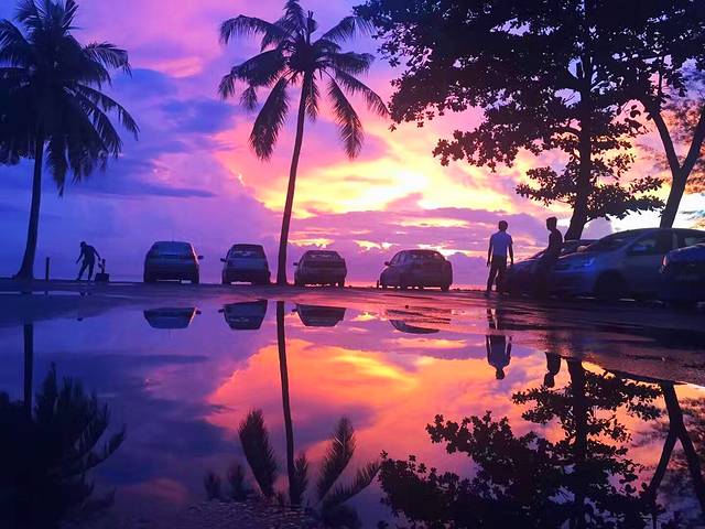看着这天边的庞然大物散发出迷人的光彩,感觉它距离你那么近又无法碰触。周围的椰树在晚风中轻轻摇曳,仿佛想留住这般绝美的景色,静静的看着它,这一刻,你的脑海里会想起谁?