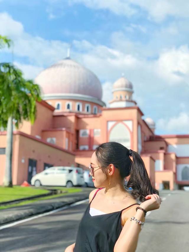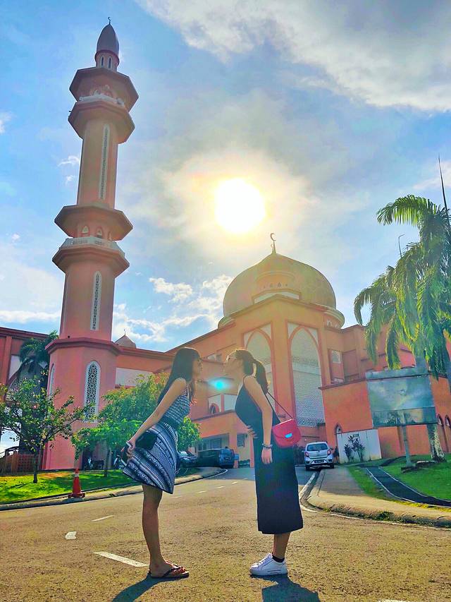 著名的沙巴大学粉色清真寺,是少女都会留影几张。