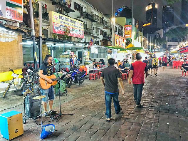 除了美食,还有许多街头了对在表演,到处洋溢着欢声笑语,享受着夜晚阿罗街的那份轻松自在。