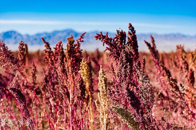 秋天的藜麦地,是收获的希望,也是诗歌的浪漫。原本,藜麦与东寨的相遇,便是一场跨越时空的爱恋,一场亘古的相随。当藜麦从数千年前的南美大陆,来到河西走廊的东寨,融入了祁连山下的这片土地,雪山、阳光,也便成了点缀,刻骨铭心的,只有这一片火红。