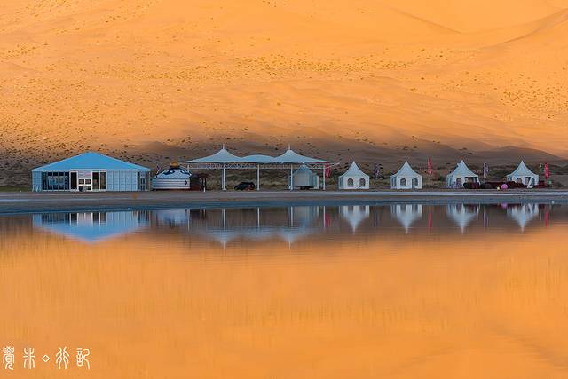 丹巴吉林沙漠被国家地理杂志评为我国最美丽的沙漠,奇峰、鸣沙、湖泊、神泉、寺庙,一同谱写着丹巴吉林沙漠别样的美。此行,没有深入腹地,没能登上有“沙漠珠穆朗玛峰”之称的必鲁图沙山,没能一睹庙海子和丹巴吉林庙的风采,只是在诺尔图,便已经感受到这片沙漠的与众不同。