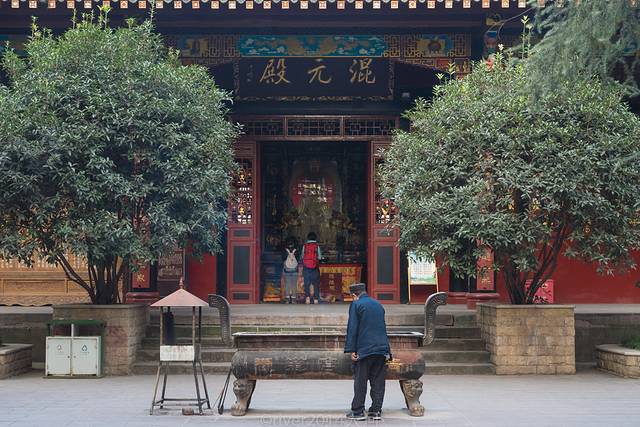 由于青羊宫收取门票,所以里边的游人不是很多,显得较为清净。唐朝时修建了许多宏伟的建筑,在明朝时由于战乱而被毁,如今保留下来的建筑主要是清朝所建。
