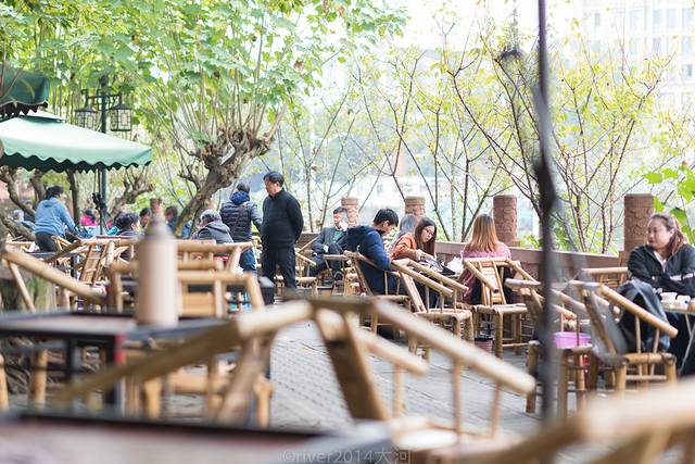 公园区就更加生活化了,沿着江边在竹林间就是成都人最爱的茶馆,这是成都生活悠闲的象征。泡一杯茶,就可待上小半天时间,成都人总是善于在各种公共空间里建起茶馆,而且生意必定不错。