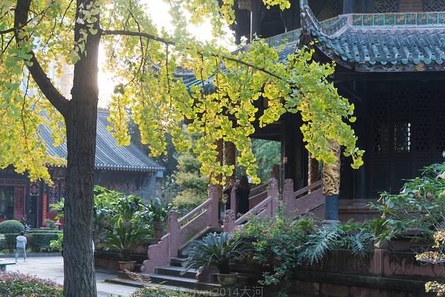 青羊宫内有几株高大的银杏树,还未到最佳的观赏期,已经吸引了不少游客前来拍照。
