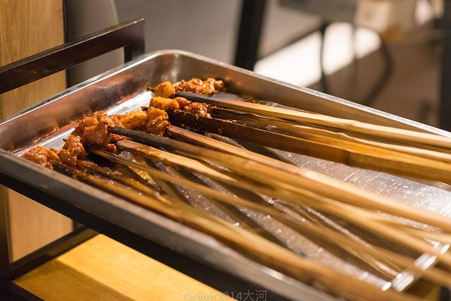 巨大的烤盘上放满了各种肉,这样的环境很适合家庭和朋友聚餐,自己选择喜欢吃的肉类。来自大凉山地区的彝族特色烤肉,在成都也是风生水起。