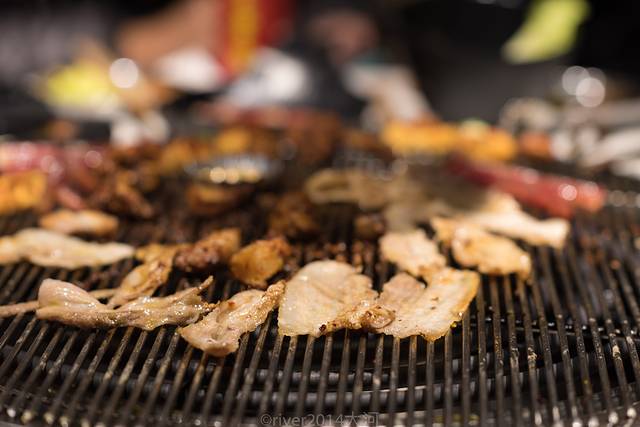 大块的猪肉放在烤盘上慢慢的烤,看烤肉慢慢的变色,香味飘出来,油滴落下去,烤肉的过程也是很享受的。客人可以自己烤,也可以让服务员帮忙,他们更清楚最佳的火候和口感。