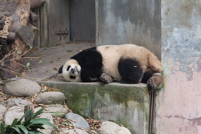 印象中的大熊猫是很懒的,并不太喜欢动,大多数时间都在吃竹子和睡觉,大熊猫对于睡觉这件事好像要求不高,随时随地都能睡着。