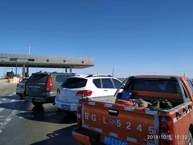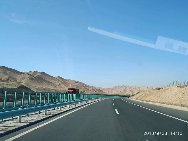 2018年10月5日早晨起来到水果批发市场买了新疆大枣,找了一家新疆特色饭店大吃一顿。下午两点进去高速公路踏上回家的路!结果到了高速公路入口驾驶证行车证又被交警扣了,必须停车休息30分钟才可以走。因为马上要进去300公里无人区。只有进去甘肃省才有服务区可以加油休息。