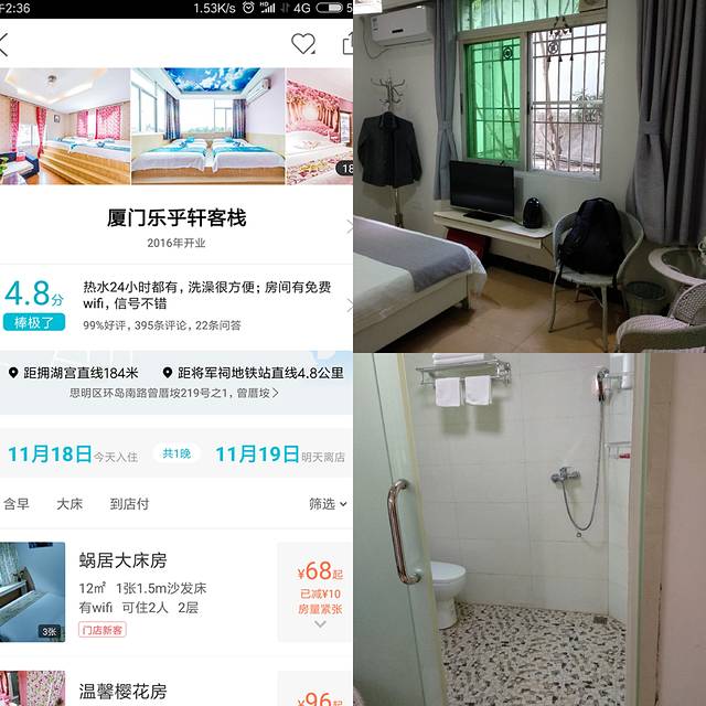 订的是听雨轩客栈,去到客栈后发现是踩雷了,被安排到了隔壁的客栈,外观、房间跟照片上出入都有点大。我们订的两个房间,房间小,而且两个房间卫生情况也不怎样,而且窗口没有防盗网又靠近路边,不推荐。