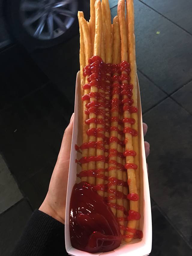 里面有好多家麻花,从入口到出口也有好多家,真真假假你根本分不清,看排队人最多的就是了。有椒盐,蜂蜜,香辣椒盐,临走时还遇到一家有紫薯和别的好多口味。