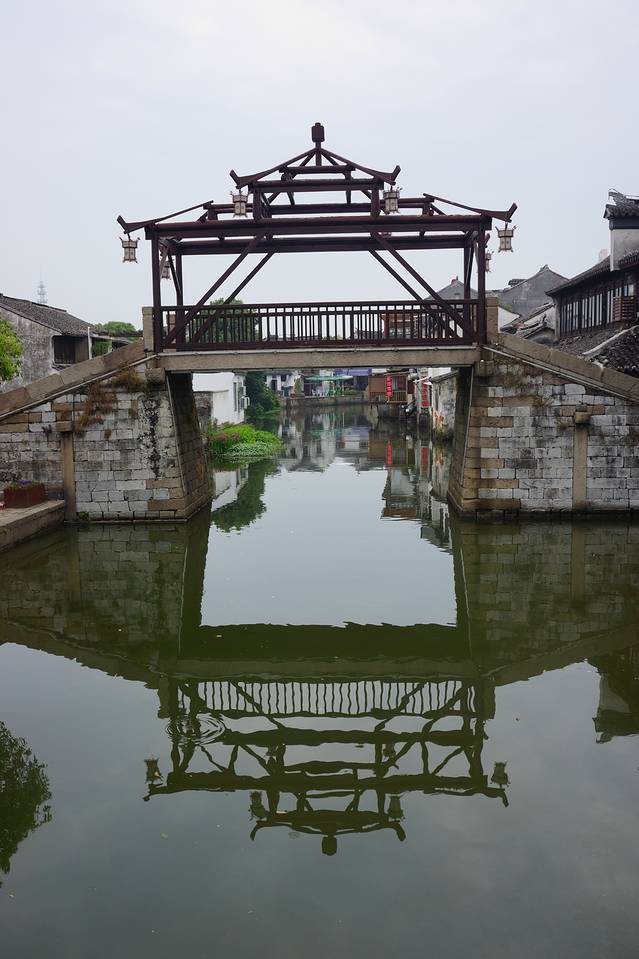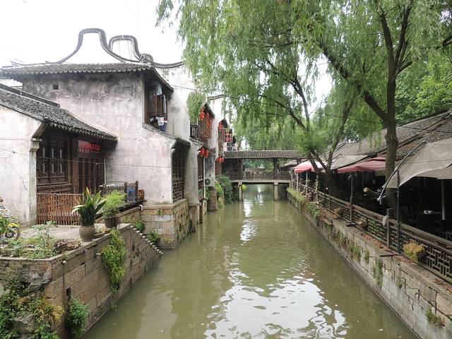早晨从千岛湖畅想宾馆出发,驾车回浦东新区路过上海枫泾古镇。枫泾古镇地处上海市金山区,枫泾镇是中国历史文化名镇,亦为新沪上八景之一,历史上因地处吴越交汇之处,素有吴越名镇之称;枫泾为典型的江南水乡古镇。古镇周围水网遍布,镇区内河道纵横,桥梁有52座之多,现存最古的为元代致和桥,距今有近700年历史。枫泾全镇有29处街、坊,84条巷、弄。至今仍完好保存的有和平街、生产街、北大街、友好街四处古建筑物,总面积达48750平方米,是上海地区现存规模较大保存完好的水乡古镇。