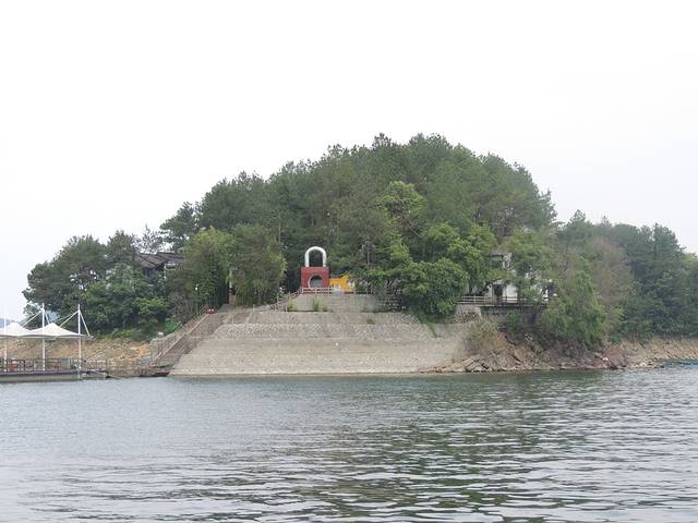 乘坐伯爵号先到达梅峰岛,乘坐缆车(60元)或者步行上山,导游只给30分钟的时间。爬到梅峰顶,可以俯瞰千岛湖全景。