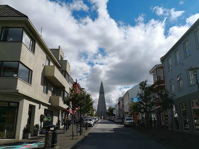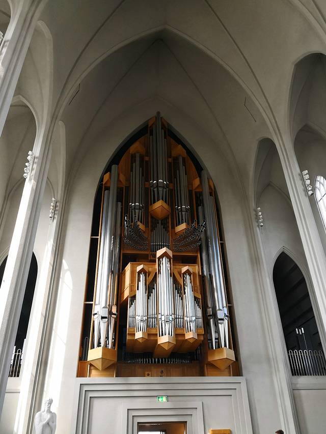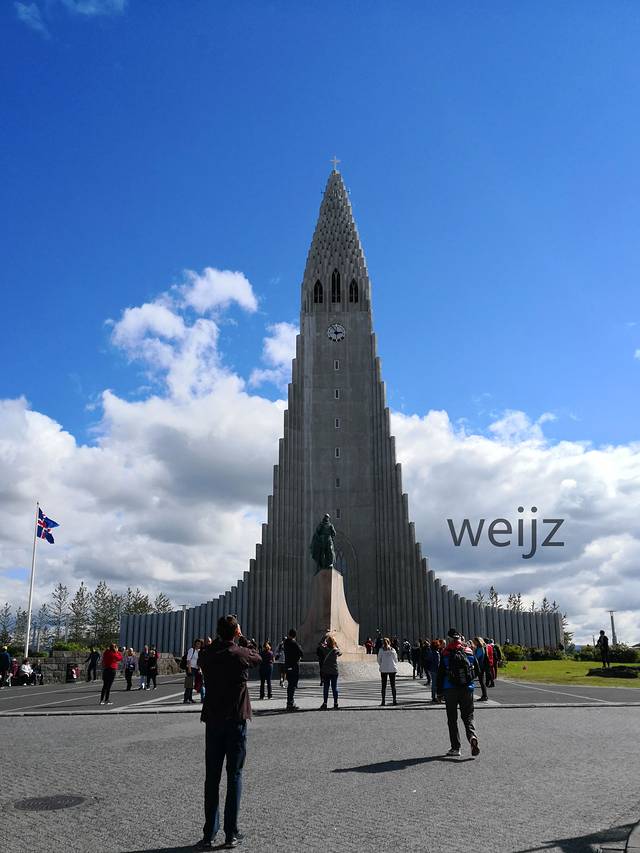 第二站:哈尔格林姆斯教堂(Hallgrimskirkja),免门票,地址:Hallgrímstorg 1 101 Reykjavík Iceland。从珍珠楼出发驱车约10分钟到达。周边多个停车场,平时收费,今天周日免费停车。哈尔格林姆斯教堂位于市中心,市区不大,景点集中,均可步行达到。哈尔格林姆斯教堂是雷克雅未克的最高的标志性的建筑物,教堂正面的造型独特,似太空梭,又似管风琴,完全颠覆了教堂设计的传统。