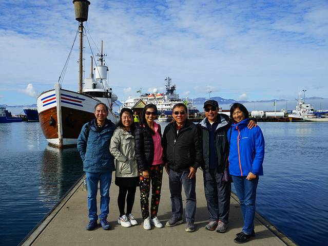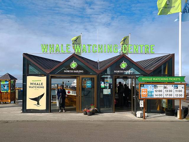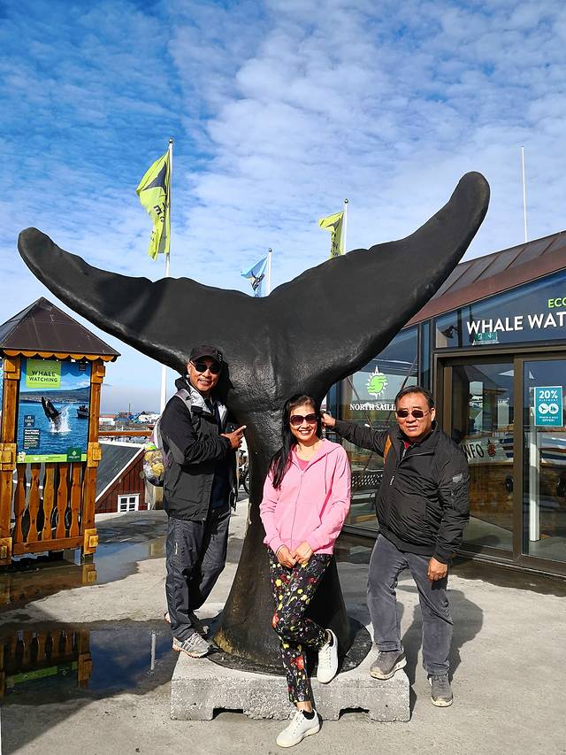 胡萨维克被誉为“冰岛观鲸之都”,这里到处都可见到鲸鱼的身影。所住酒店,从大堂到走廊再到房间,墙上挂的都是以鲸鱼为主角的装饰画;港口边有独具特色的鲸鱼博物馆;镇中心有数家经营观鲸的游船公司。全世界很多海滨旅游点都有观鲸的项目,但出海容易,见到鲸鱼却不易,而在此看到鲸鱼的几率高达96%。