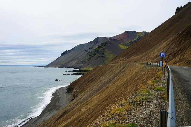 虽然无缘亲近海鹦,但今天路上的风景却是最美的。从霍芬到雷达夫尤都,1号公里沿着北大西洋海岸线蜿蜒向北,左边沿途都是火山熔岩的遗迹,风光如画。