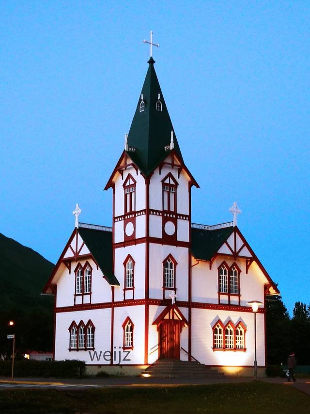 小镇的地标是建于1907年的木制教堂Húsavíkurkirkja。