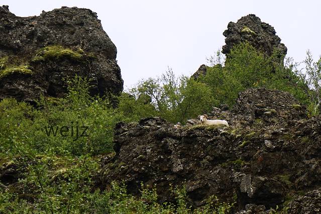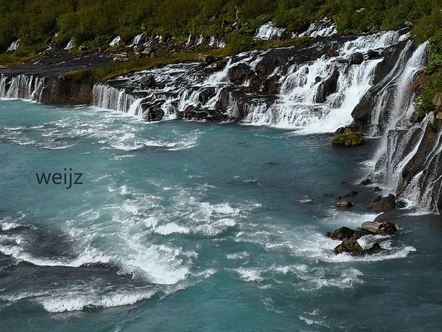 著名的赫仑瀑布距离德尔达图赫菲温泉仅24公里,经518号公路,十几分钟就到了停车场。旅游热地,游人如织。赫仑瀑布又叫熔岩瀑布,其水流不是来自高山,而是由火山熔岩流浇铸出来的广阔平原,乳白色的冰水从熔岩的陡坎涌出,涓涓细流,汇入溪谷。虽落差不大,瀑流平缓,但绵延几百米,秀美而壮观。