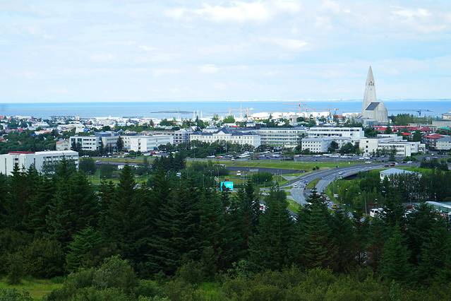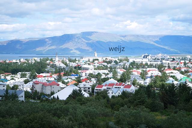 走上位于珍珠楼四楼的观景台(收费440冰岛克朗/人),俯瞰雷克雅未克全景。人迹罕至的火山,耸立在现代化都市的后面。