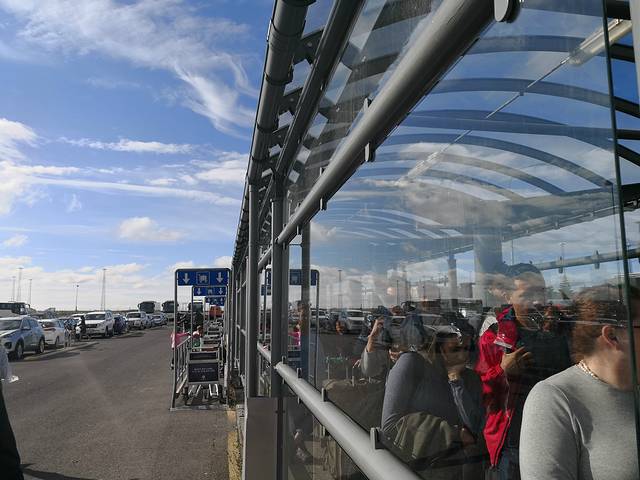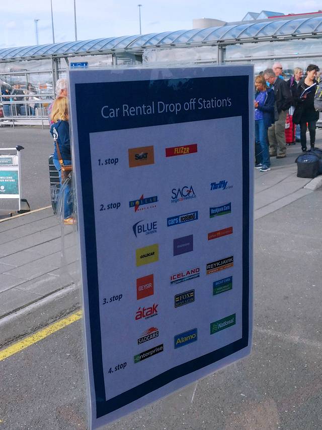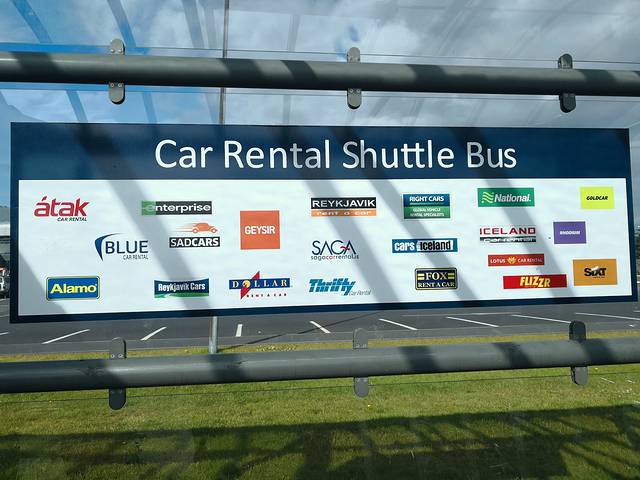 (1)免费穿梭巴士。在雷克雅未克机场候机楼一楼只有赫兹、安飞士等几家大公司的柜台,大多数租车公司的门店在距离机场约1.5公里的地方,有免费的穿梭巴士送达。从机场信息中心旁边的大门迈出,沿着这个风雨走廊走到头就是免费穿梭巴士的候车处。