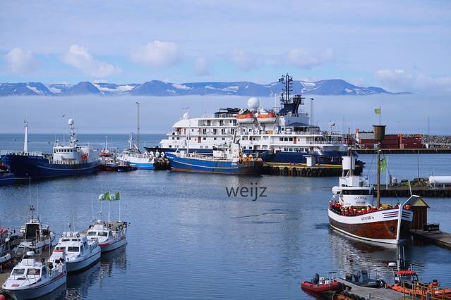 胡萨维克位于冰岛北部,傍山临海,有着令人惊艳的高颜值。港口是小镇的中心,也是最能体现小镇高颜值的景观。