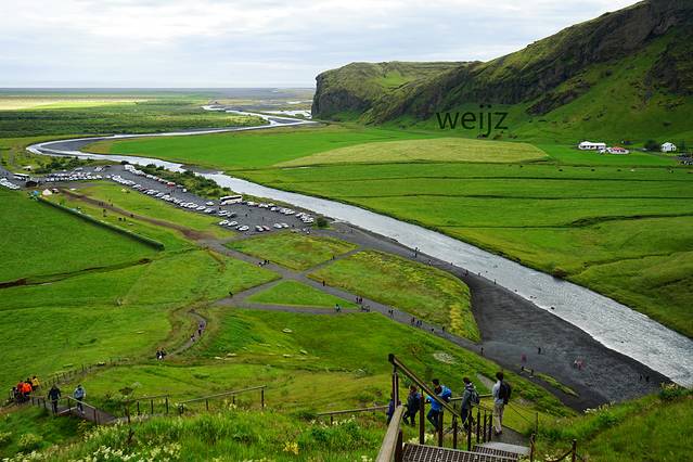 斯科加瀑布的右边修有石阶,一直通往瀑布顶端。攀登途中,回头远眺,近处的青山,中间的大平原,远处的旷野,尽收眼底。