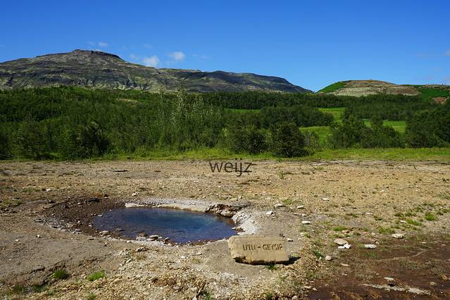 第二站:大间歇泉(Great Geysir),免门票。被列为黄金圈三大景点之一的盖锡尔间歇喷泉,如今名存实亡,已停止喷发。慕名而来的游人都围着它的小邻居——Strokkur。Strokkur每隔5至8分钟喷发一次,稍纵即逝(喷发时长不足1秒钟),我们同行6人仅拍到了一张喷发照。愚以为此是冰岛惟一不必游的“著名景点”。