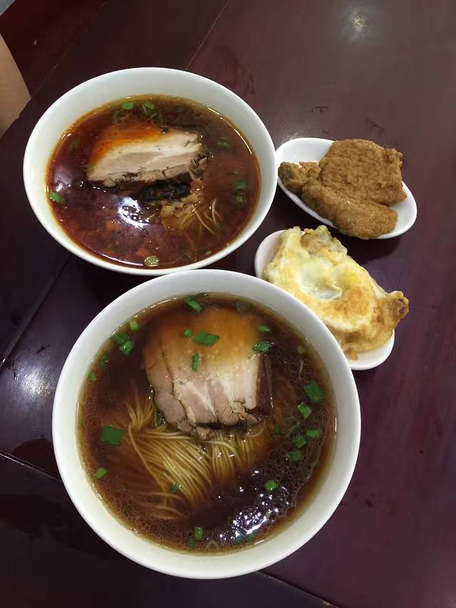 枫桥大肉面,大概的名字,准确的记不住了,非常好吃,我不爱吃面的人都觉得好吃,肉很香,一点也不腻,汤虽然颜色深,但是并不咸,配着面刚好。