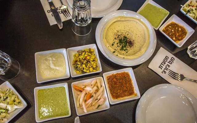 午餐一定不能错过当地菜,首推阿拉伯菜,在开胃菜中面包是最常见的,沾着各种酱吃实在美味。其中鹰嘴豆所做的白酱大受欢迎,但是热量很高,导致我的马甲线在这段旅途中完全消失。