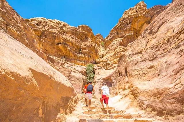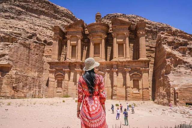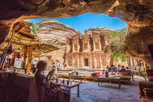 修道院是ins上非常热门的拍摄点,很多国外旅游博主都来这里打卡过。当然,除了修道院,古城里的【卡兹尼神殿】是整个佩特拉古城中最旅游博主欢迎的地方,但需要爬到神殿对面的山顶上才能进行“大片级”纪念照。且只有由当地人带领上去,往返至少需要60分钟,需要手脚并用的攀爬。