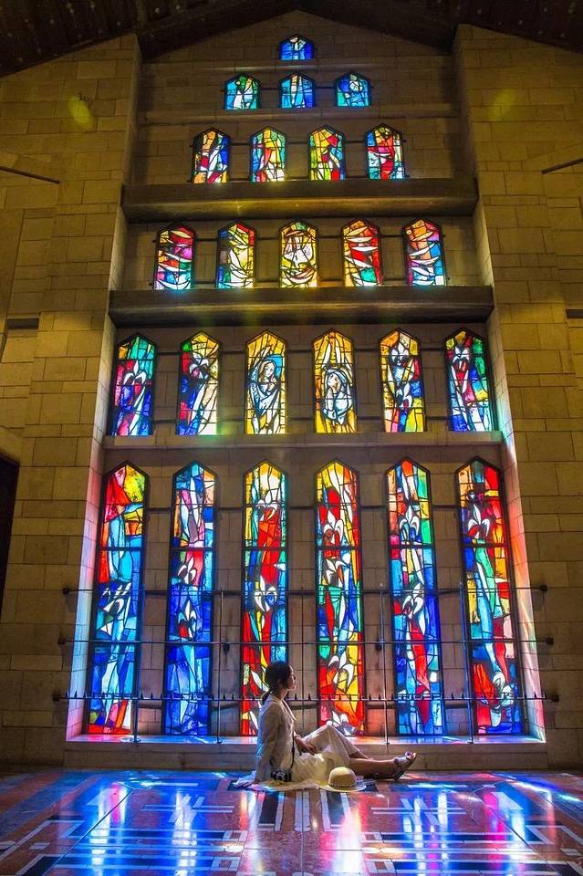 尤其是教堂二楼的落地玻璃窗,五彩缤纷教人心灵荡漾,喜欢拍照打卡的女生一定不能错过这里。这是在以色列所有遇见的教堂里,颜值最高的呢。