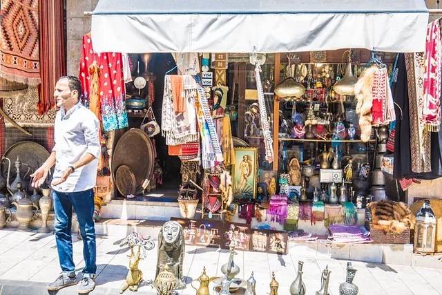 Tips:和阿拉伯人讲价格的时候,要大胆尽情不要脸的把价格对折砍,甚至对折之后继续砍。往往一条400sh的围巾能够砍到100sh,甚至70sh到80sh之间。