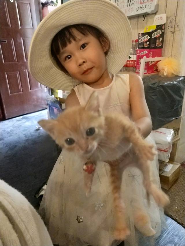 女儿瞬间被小🐱吸引。