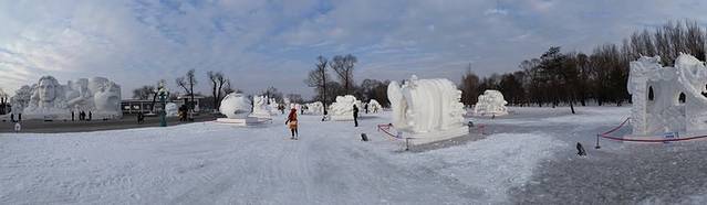 在哈尔滨冰雪大世界拍的照片。冰雪大世界门票比较贵,但我觉得很值啊。冰雕师傅们把冰块雕刻成了这种形状,肯定很费工夫的。这种钱花的是心甘情愿。