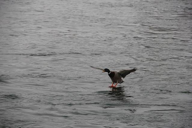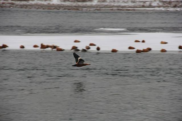 看大家冬天都喜欢去长白山,但我真的不知道冬天的长白山到底好玩在哪里啊。我们没有去,转而去了长白岛。拍到了海鸥(是不是海鸥?)当时看到它在水面上站着,抓紧拍了下来。