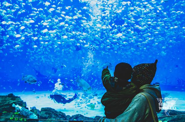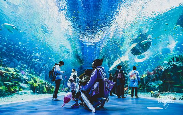 这是一个充满童趣和梦幻色彩的未来世界。鱼很多,透明通道里N种鲨鱼等海洋鱼类,震撼!