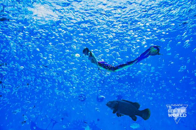 而且每天有好多场人鱼表演,在没有看到鲸鲨之前,有漂亮婀娜的人鱼表演观看,也是不错的亮点。