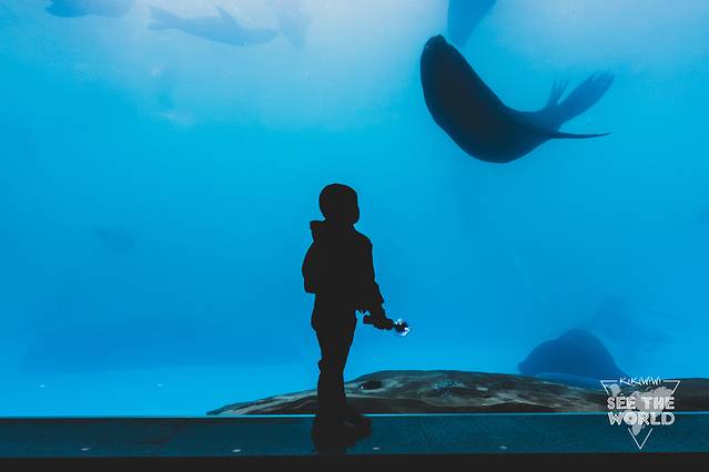 海兽馆最惊艳的,不在地面,还是地下,有面大海报景观缸,可以看到在水里游来游去海豹声影,非常有趣灵活,如果你手中有亮灯,海豹会凑近玻璃幕墙,对着亮闪闪的物体观察,特别有意思。